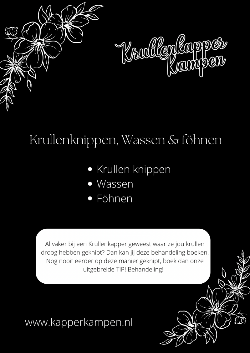 Voor je afspraak bij de krullenkapper vragen we je om met droog haar te komen. Was je haar 1 tot 2 dagen van tevoren en style het zoals je gewend bent. Nadat we jouw wensen hebben besproken, knippen we je haar in droge staat. Dit zorgt ervoor dat we goed kunnen zien hoe jouw krullen natuurlijk vallen en deze op de juiste manier kunnen knippen. Na het knippen wassen, verzorgen en stylen we je haar. Vervolgens controleren we je krullen en knippen we, indien nodig, nog wat bij.